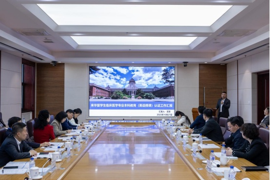 国际教育学院院长蒋磊、基础医学院院长王放分别汇报了来华留学整体工作情况、MBBS整体工作情况及认证自评自改情况。