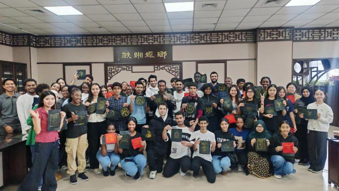 活动尾声,同学们纷纷手持自己的作品合影留念,用镜头定格这场兼具文化性与趣味性的体验之旅,记录下与传统文化相遇的美好瞬间。未来,国际教育学院将继续联动校园优质文化资源,打造更多特色非遗体验活动,为国际学生搭建感受传统文化优质平台,助力中华优秀传统文化再校园中落地生根、薪火相传。