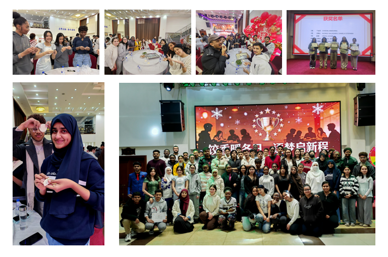 2026年1月19日,国际教育学院预科部“饺香暖冬日,逐梦启新程”包饺子活动暨秋季学期表彰大会圆满落幕。活动伊始,学生主持人以温馨话语欢迎师生,拉开活动序幕。 全体预科生按班级分为7组,在指导老师的带领下分工协作包饺子。教师们耐心传授技巧,鼓励学生发挥创意,现场欢声笑语不断。包好的饺子被及时送至厨房蒸煮,与此同时,你画我猜、躲避手、传话等趣味游戏轮番上演,获胜同学参与转盘抽奖,赢取马年吉祥物、饺子挂件等精美礼品。